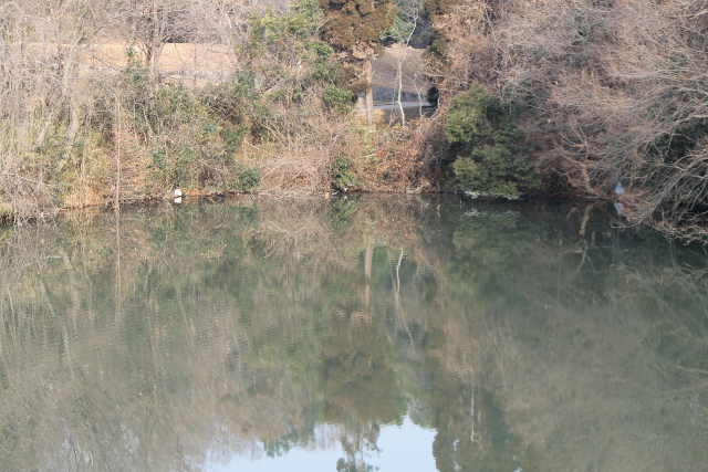 千里中央公園(せんりちゅうおうこうえん)の安場池(やすばいけ)をいつもと違(ちが)う方向(ほうこう)から撮影(さつえい)してみました。この方向(ほうこう)にもオシドリが見(み)えるということなのですが、今朝(けさ)は一羽(いちわ)も見(み)ることができません。カモさえも姿(すがた)を見(み)せません。