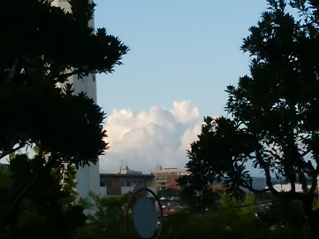 昨日見つけられなかった入道雲を夕方、東の空に見つけました。もう少し早い時間だったら勢いよくモクモクと高く伸びていたと思うのですが、残念ながら未成熟な積乱雲で終わったようです。