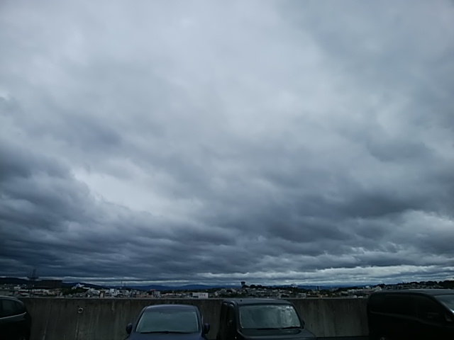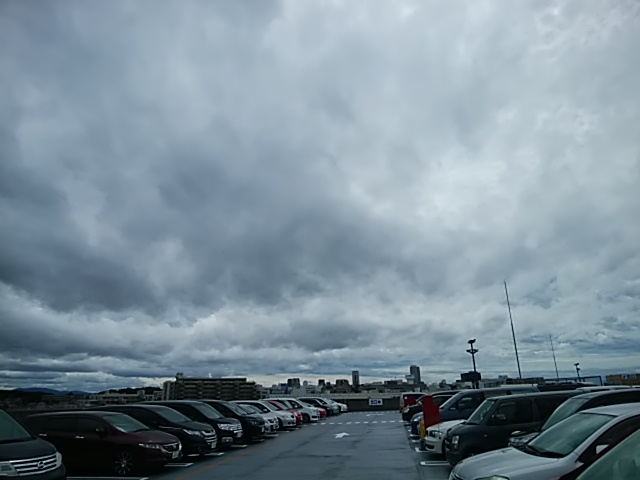 箕面のキューズモール駐車場の屋上から撮影しました。クルマを降りてから風が強くてちょっとびっくりしました。空を見ると灰色の雲が覆い被さるように広がっていました。