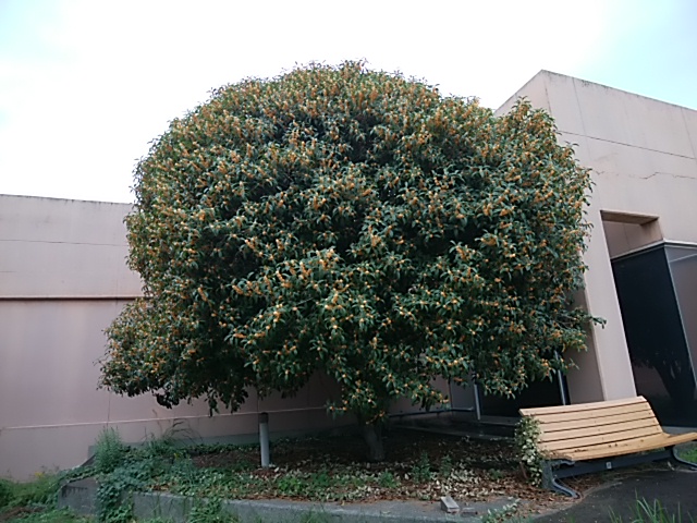 こんなに大きなキンモクセイもありました。下のベンチと比べてみてください。かなり大きいのがわかるでしょう。
