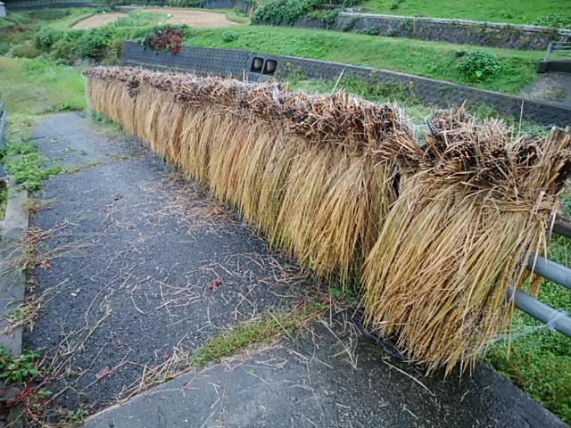 稲架と書いて「はさ」と読むそうです。刈り取った稲を干す棒のことを稲架と言うそうです。