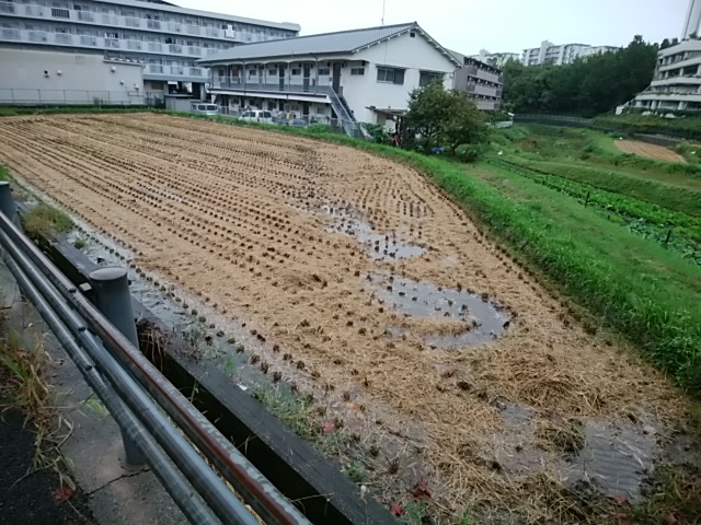 いつもの田んぼの稲穂が刈られて風景が変わっていました。きれいな田がでてきました。