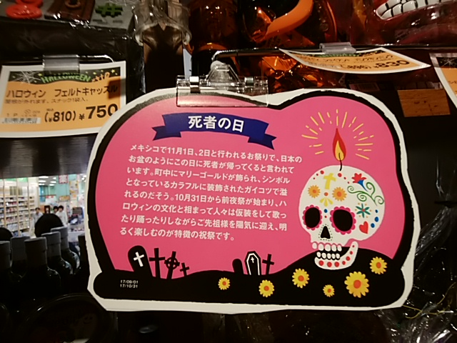 メキシコでは日本のお盆と同じ感覚でハロウィンの行事を楽しんでいるようです。ハロウィンの飾りの中にがいこつが登場するのはこういった関係なのですね。