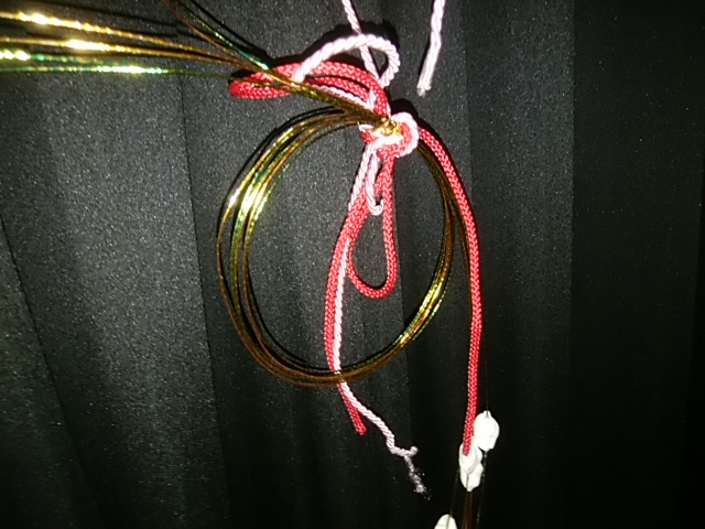 鏡餅の飾りで見つけた飾り紐です。先の方にやはり餅花がついていました。
