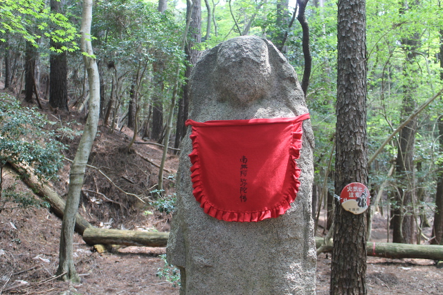昔、巡礼で倒れた人々の為に作られたとか、しらみを白巳と読んで白ヘビを祭っているとか、諸説あるそうです。ちなみに白ヘビは水の神様なので水不足に困らされている箕面の農民が願いを込めて作ったとか、顔がはっきりと見えないのですが・・・前掛けの下には何かを持っているような・・・