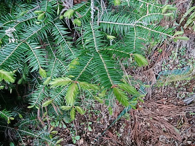 たぶん杉だと思うのですが、若い木に新しい葉っぱが先っちょに生えてきていました。