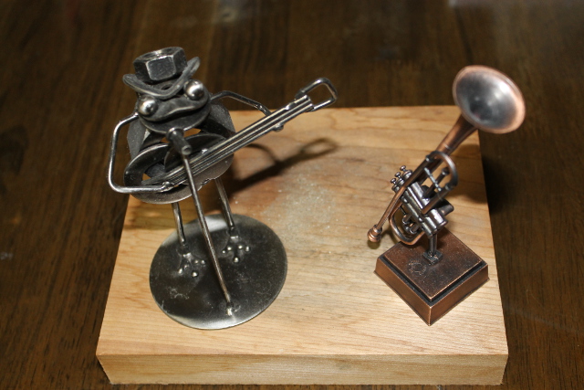カエルのギターとトランペットがいつの間にかテーブルの真ん中で演奏会をしていました。