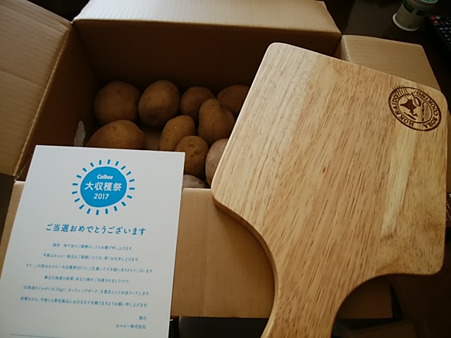 今年もまた、カルビーさんから大収穫祭の景品とジャガイモが送られてきました。