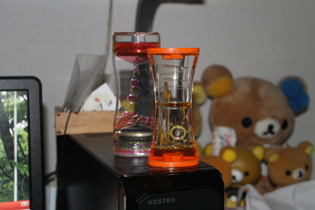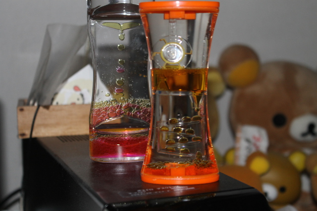 砂時計(すなどけい)のように時間(じかん)が計(はか)れる油時計(あぶらどけい)です。今日(きょう)は時(とき)の記念日(きねんび)です。