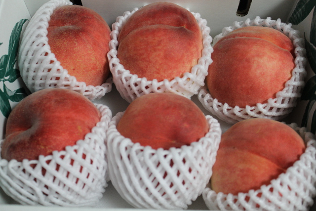 よく肥えてまるまるとした桃が六個、箱の中から顔を出しました。