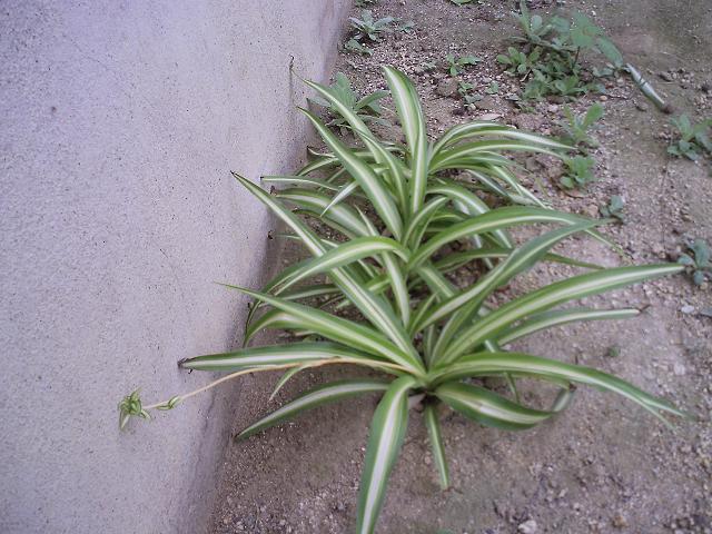 窓の下に植え付けた折り鶴ランの子苗に小さな芽が出ていました。