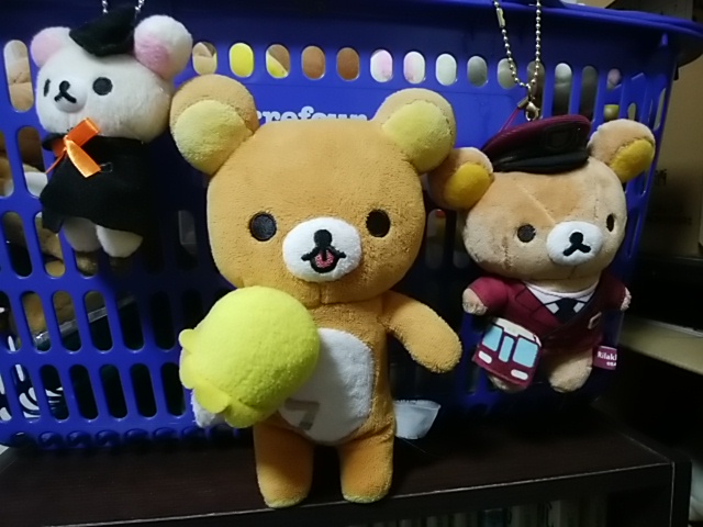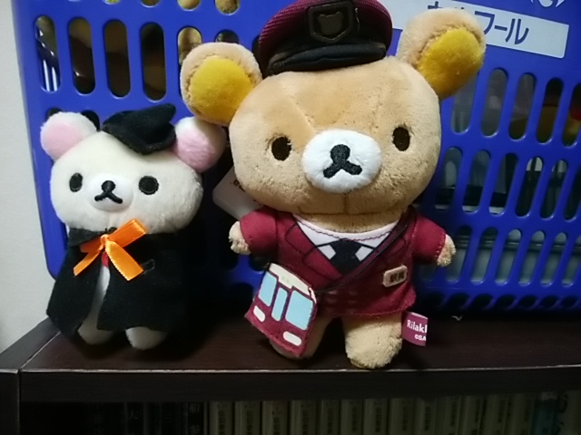阪急電車の運転手になったリラックマとハロウィン衣装のリラックマを並ばせて撮影してみました。二人とも名前があったはずなのですが・・・