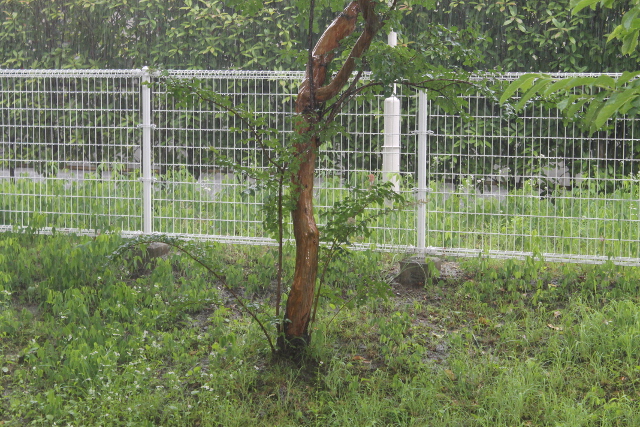百日紅(さるすべり)の木(き)が濡(ぬ)れて光(ひか)っています。