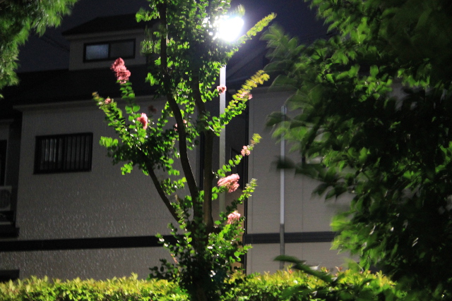 百日紅の後ろの街灯が光っていて、昨日の昼間の百日紅を思い浮かべてしまいました。
