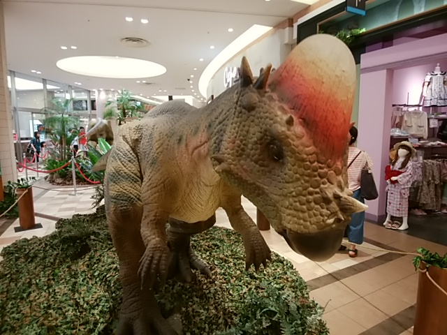 先週、暑さを忘れるために恐竜の新作映画でも見ようかと尼崎のキューズモールへ出かけました。二体の動く恐竜がショッピングモール内に飾られていました。目も動くし、尻尾も動きます。幼い男の子がバギーから降ろされてびっくりした目でこの恐竜を眺めていたのが印象的でした。