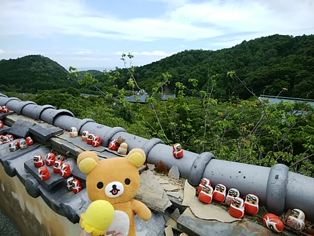 勝尾寺の小さなダルマたちが並んでいる軒瓦が地震の影響か割れ落ちていました。並べられていた小さなダルマたちも少なからず被害を受けて倒れたり落ちたりしていました。