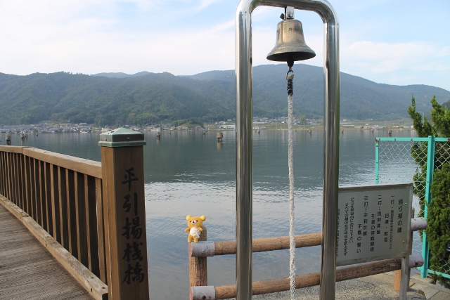 竹のいかだになったリラックマです。これは何と日本海の海です。どことなくリラックマの顔が緊張しているように見えませんか?