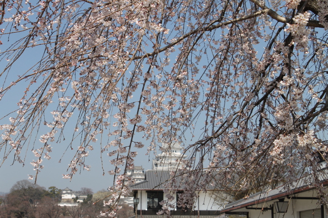 大手門の駐車場で咲いていた枝垂れ桜です。