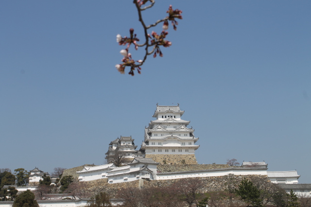お城の前の広場にどういうわけかあまり人が入っていませんでした。天守閣を目指す人たちや早めの花見をする人たちはこの広場の外の道路や広場の端っこに集まっていました。