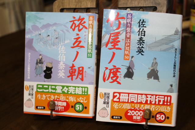 昨年の後半読み続けてきた佐伯泰英さんの居眠り磐音江戸双紙の第50巻、第51巻がついに発売されました。1巻から48巻まではずーっと豊中や、箕面の市立図書館で借りて読んでいたのですが、49巻を購入してからは4日の発売日が待ちきれない思いでいっぱいでした。