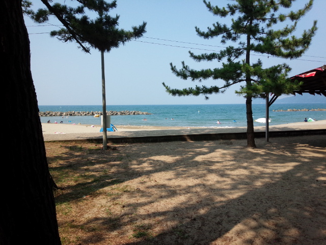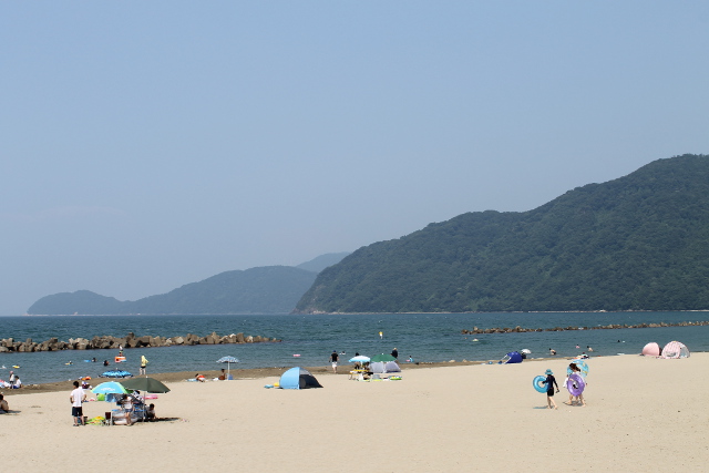 ここの海水浴場は山がきれいですね。