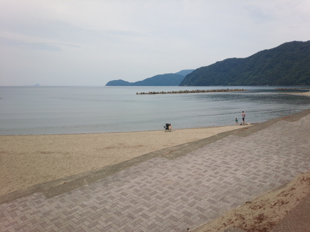 そのせいか夜かなり汗をかいているようで、最近汗疹がひどくて至るところが痒くて、赤く腫れてきました。こういう時は海の水に入ればと考えて、今日は舞鶴の海、神崎海水浴場に行きました。