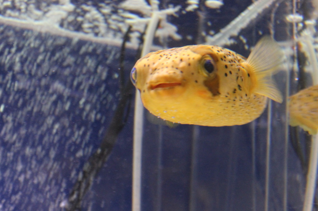 昨年の6月以来約1年ぶりに宮津の『魚っ知館』へネズミフグの『ネズくん』たちに会いに行ってきました。大きな水槽に去年もいたネズくんたち2匹が悠々と泳いでいました。見たところ、去年よりは元気に泳いでいました。