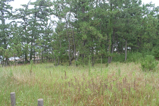 懐かしい松林です。でもミストのような小雨が降っていました。