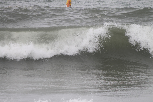 大きな波と一緒に茶色い土がザブーンときてこれはちょっとは入れそうもないなとあきらめました。