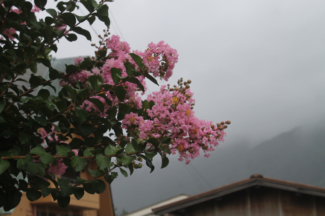人気のない海辺の街にサルスベリの花が輝いていました。