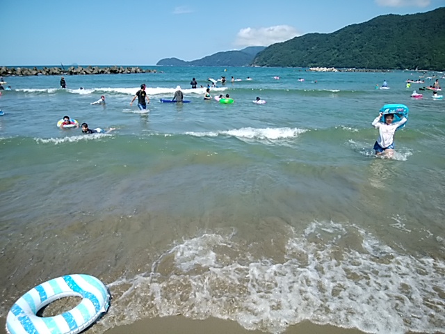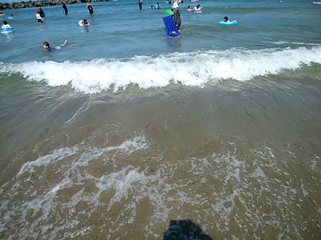 土曜日の神崎海水浴場です。東京の方へ向かった台風の影響か大きな波が浜に押し寄せてきて波と遊ぶのが楽しかったです。