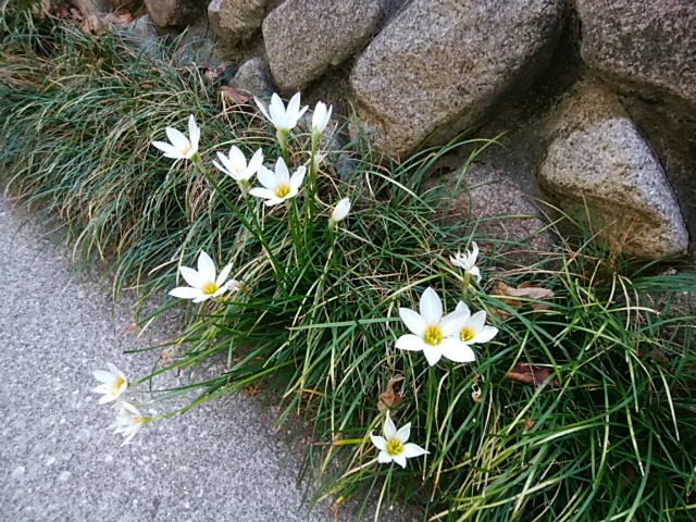 ヒガンバナ科のゼフィランサス玉すだれです。この花もヒガンバナと同じようにアルカロイド系の有毒物質を持っているそうです。何となくはなお少ないこの時期に可愛い花として目を惹きますね。