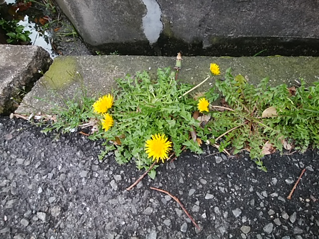 3月22日なのに朝からの雨でかなり寒い日でしたが、夕方北風に吹かれながらふと足元を見るとタンポポが咲いていました。