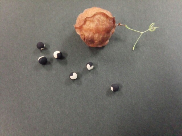ふうせんかずらの種を採りに行ってきました。茶色くなった風船の中に3個ずつ種が入っていました。ハート型の白いもようが入っていてネットの写真どおりでした。