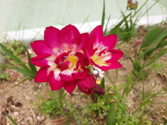 同じく森之宮の病院の屋上で見た名も知らないきれいな花です。ひょっとするとタチアオイの一種かもしれません。
