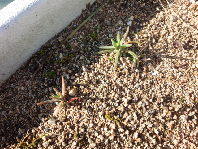 去年、挿し芽をした松葉ボタンが少し大きくなったようです。このプランターにはもうすぐチューリップやヒヤシンスを植えるので避難させなければなりません。小さな鉢に植え替えようかなと考えています。