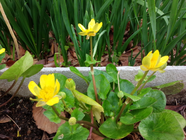 鮮やかな黄色の花が咲いていました。この花の名前は知りません。それでも花の形を見てシクラメンに似ているなと感じました。葉っぱの形を見てもなんとなくシクラメンのような気がしたのですが、全体の形があまりにも違うのでよくわかりません。ネットで検索したのですが、キンポウゲ科のリュウキンカという花によく似ていました。