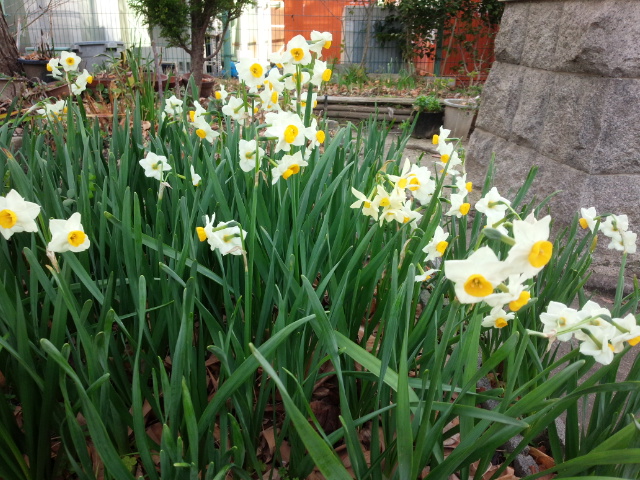上の花に比べてこちらはおなじみさんです。水仙の花は朝が美しいですね。白さが光っています。この花を初めて見たときにはゆで卵を思い出しました。