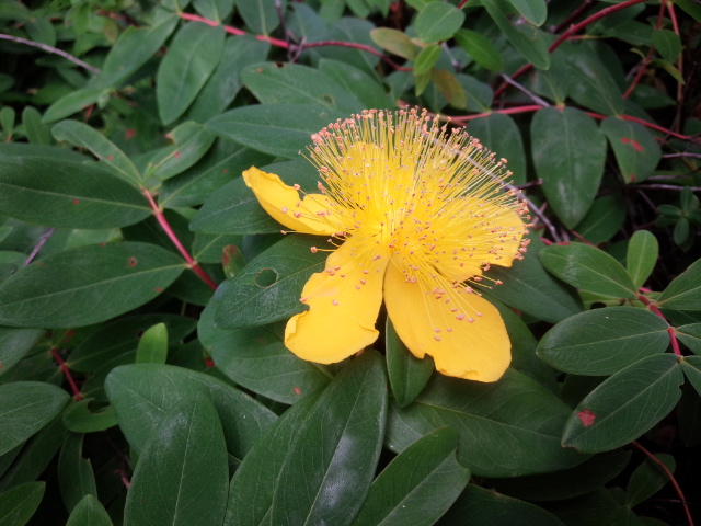 ビヨウヤナギの花を一つ見つけました。おそらくこれはヒペリカム・カリシナムという品種で別名西洋キンシバイといわれている花ではないでしょうか?
