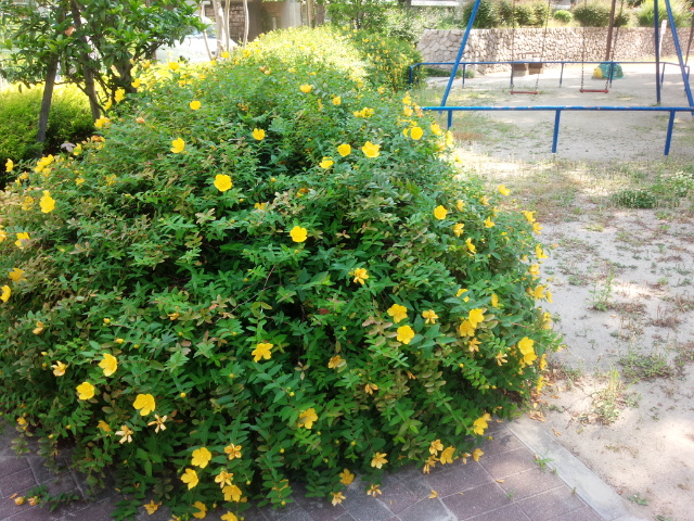 こちらは公園などでよく見かけるキンシバイの花です。