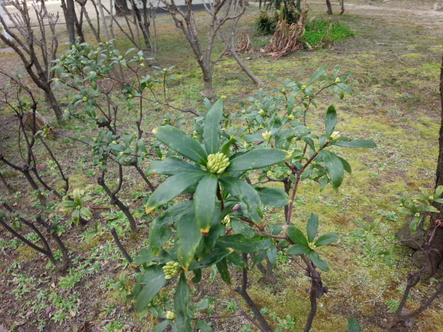 ジンチョウゲのつぼみがかなり大きくなっていました。もうそろそろ咲きそうです。