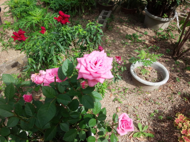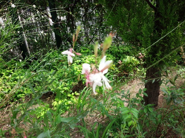 本当に森之宮の団地の下に咲いていた芙蓉の花が枯れた後に、なでしこの花が咲いていました。