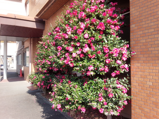 今年も山茶花の花が見事に咲いてきました。この花を正面に見て左手に入って行くと新しく建った病棟に行くことができます。新しい病棟ができてもこの病院を訪れる人を迎えてくれるのはやはりこの花でしょう。何年か前、お正月に撮影したと思うのですが、お正月まで咲き続けているのでしょうか?