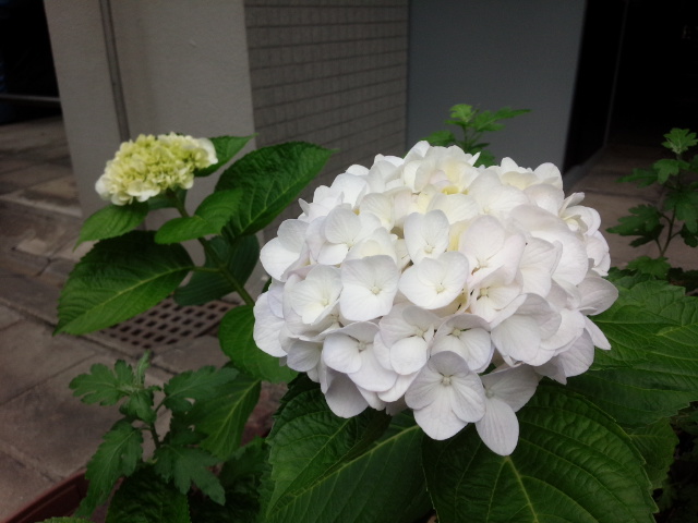 最近、色のつかないクリーム色のアジサイが流行っているらしいです。私は従来のこの色のアジサイを見て落ち着きますね。もうすぐ梅雨入りなんだなあと季節を感じます。