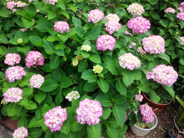 昔ながらの紫陽花の色をしたガクアジサイも咲いていました。紫陽花はやっぱりこの色でなくちゃあ。