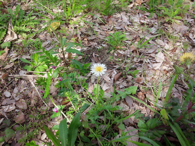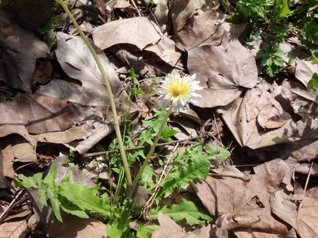 刀根山には2種の黄色いタンポポとこの白花タンポポが自生しています。