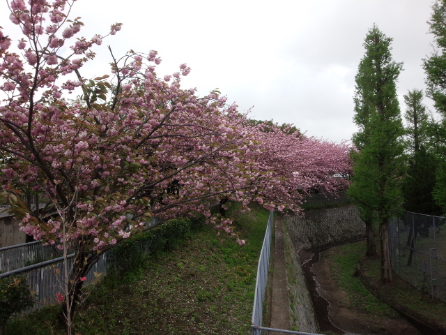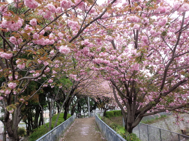 八重桜の花が満開になりました。箕面の東図書館からの帰り横の公園が見事にピンク色の染まっていました。