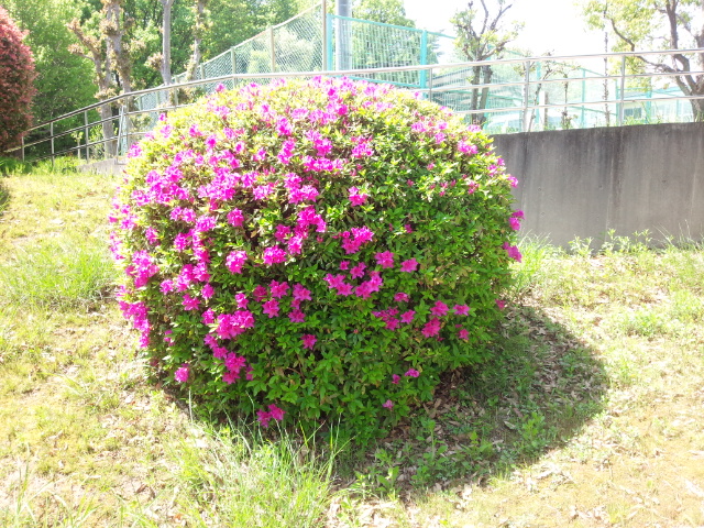 ツツジの花が咲き始めました。見事に丸いツツジの木がありました。