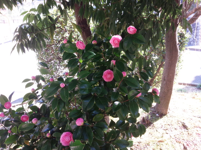 全体を撮すとこんな感じです。このままで木が大きくなれば立派な山茶花(つばき)の木になるのでしょうね。