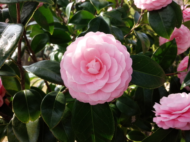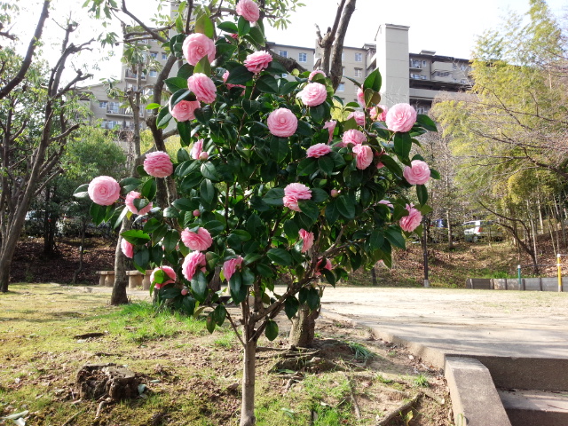 3月18日にも紹介しましたが、吹田市のドングリ公園に咲いている山茶花が満開でした。詳しくは「乙女さざんか」と言う品種だそうです。でも、もしかすると『乙女椿』かも知れません。